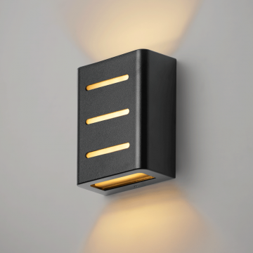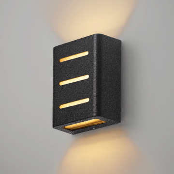 Arandela Flip 2 Aletas - Preto Fosco A Arandela Flip 2 Aletas da Germany Iluminação Externa traz detalhes para inovar nas áreas... Marca: Germany Iluminação Orçar Arandela Flip 2 Aletas - Preto Fosco A Arandela Flip 2 Aletas da Germany Iluminação Externa traz detalhes para inovar nas áreas externas, com aletas que possibilitam criar diversos efeitos luminosos. Possui design minimalista que permite compor ambientes tanto externos como internos, destacando texturas, paredes e elementos arquitetônicos com perfeição. Acompanha 3 chapas defletoras que possibilitam 8 combinações de facho de luz. Possui corpo em alumínio injetado, lente de vidro transparente, soquete G9, Índice de Proteção 43 (IP43) e um ano de garantia. A Arandela Flip é feita nacionalmente com as melhores matérias primas do mercado, por uma equipe especializada, conta com design exclusivo e inspeção que garante qualidade. Tamanho máximo da lâmpada G9: 60 x 40 x 40 mm (altura x largura x comprimento) Premiações e Reconhecimento: Top of Mind 2025 – Marca mais lembrada na categoria Iluminação LED para Área Externa Empresa: Blumenau Iluminação Marca: Germany Iluminação
