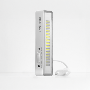 Luminária de Emergência 30 LEDs 1W 50/100lm 100-240V Luminária de Emergência 30 LEDs Nova Geração da Blumenau Iluminação garante segurança e... Marca: Blumenau Iluminação Orçar Luminária de Emergência 30 LEDs 1W 50/100lm 100-240V Luminária de Emergência 30 LEDs Nova Geração da Blumenau Iluminação garante segurança e iluminação em situações de falta de energia. Versátil e prática, é indicada para diferentes ambientes, como casas, condomínios, empresas e indústrias. Com fluxo luminoso de 100 lumens e LEDs integrados, oferece autonomia de bateria de até 6 horas e suporta até 500 recargas. Possui ajuste de intensidade de luz, sistema Plugue & Ligue para instalação fácil, é bivolt automático e conta com 1 ano de garantia. Atende à norma NBR 10898, garantindo qualidade e confiabilidade, e é testada para entregar desempenho e durabilidade.